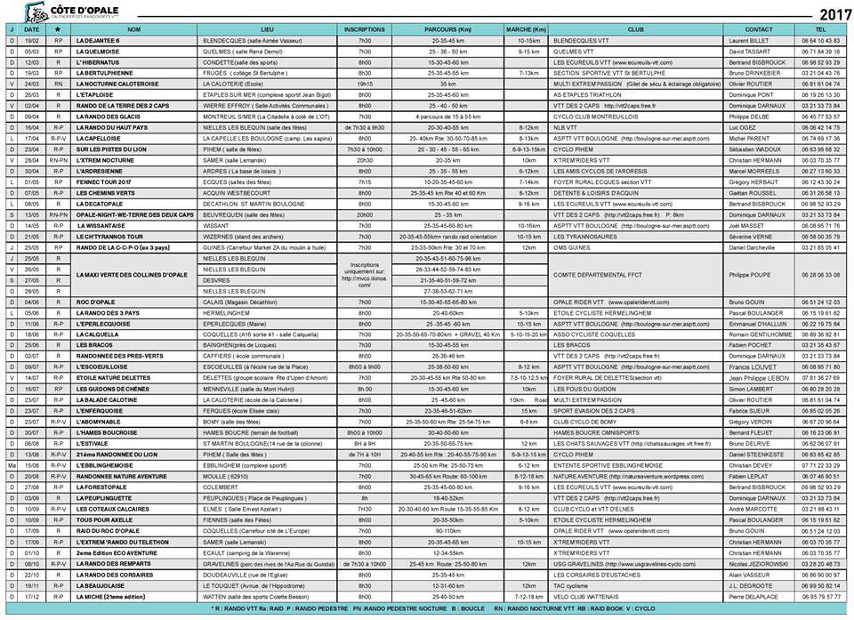 Il est arrivé le calendrier des randos de la côte d'opale 2017.