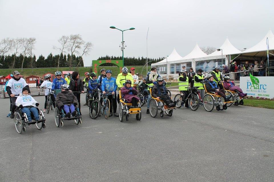 Jacki et Benoît ont pris les commandes de 2 de ces vélopousseurs, en compagnie de personnes non valides. Bravo à eux.